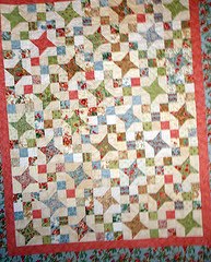 This class teaches the basics of machine piecing. Learn how to select colors, strip cut, chain piece, and add mitered borders. You'll learn lots and end up with a beautiful 9-patch quilt. Limit 4.